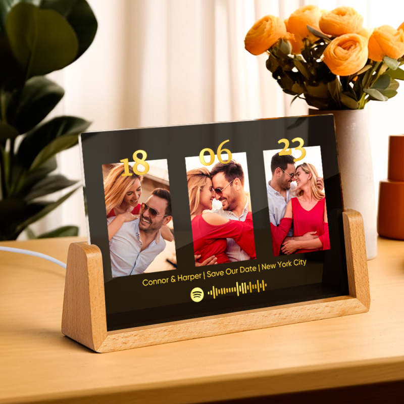 Jubileumcadeau Gepersonaliseerde fotoplaat Aangepaste nachtlamp Spotify-plaquettelamp met Spotify-code