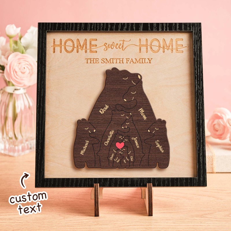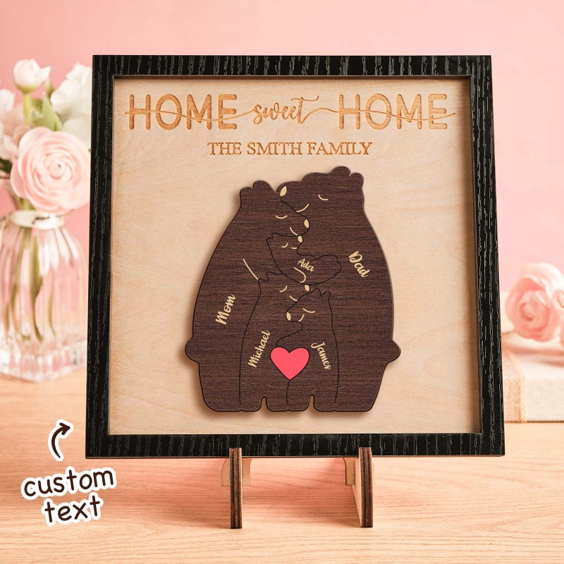 Aangepaste naam beer familie puzzel houten frame gepersonaliseerde houten huisdecoratie Moederdag cadeau