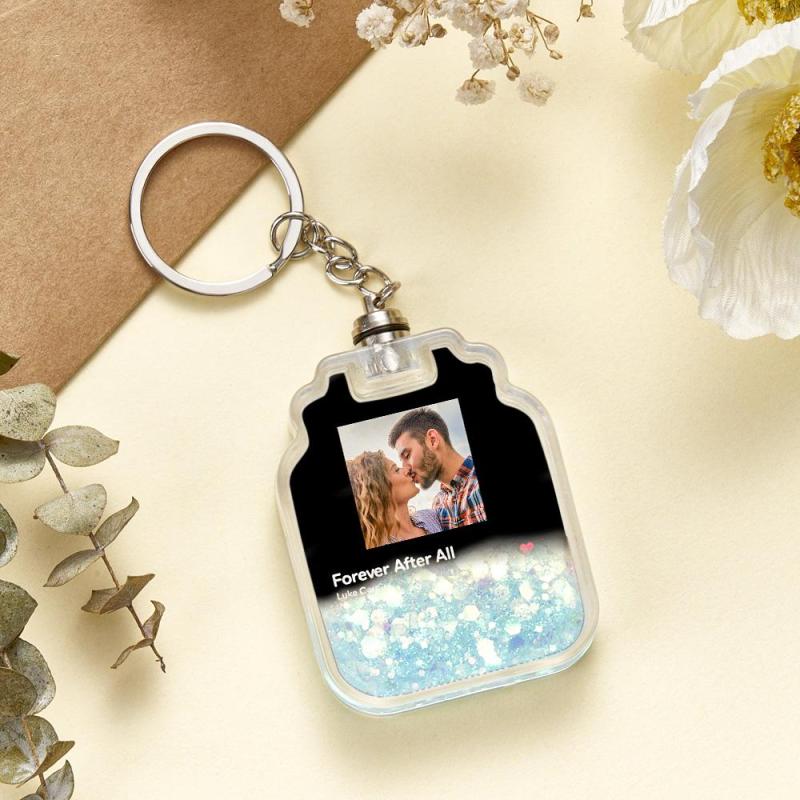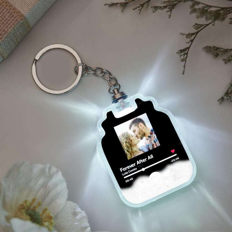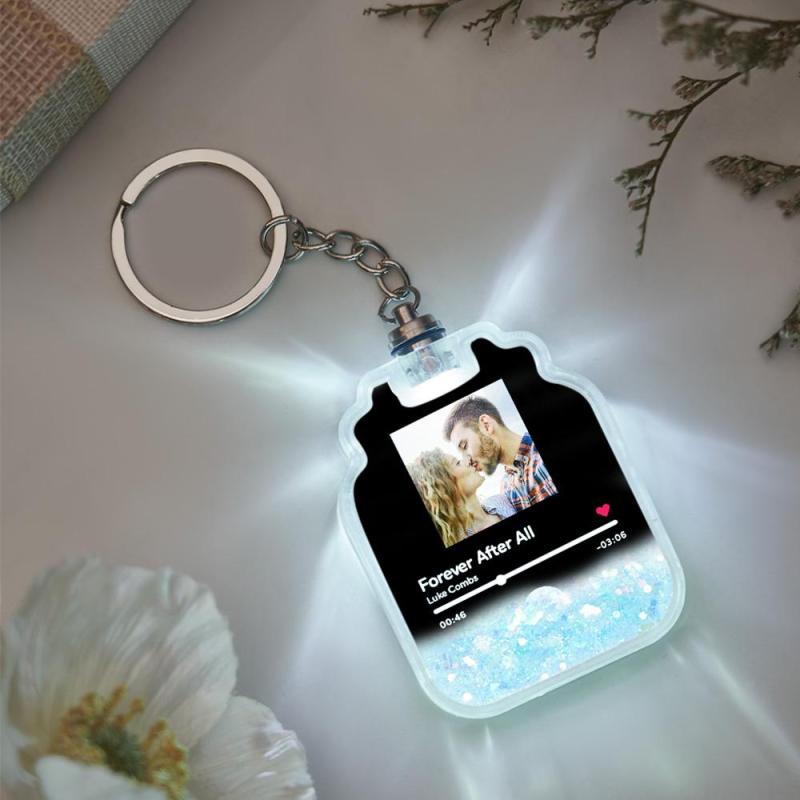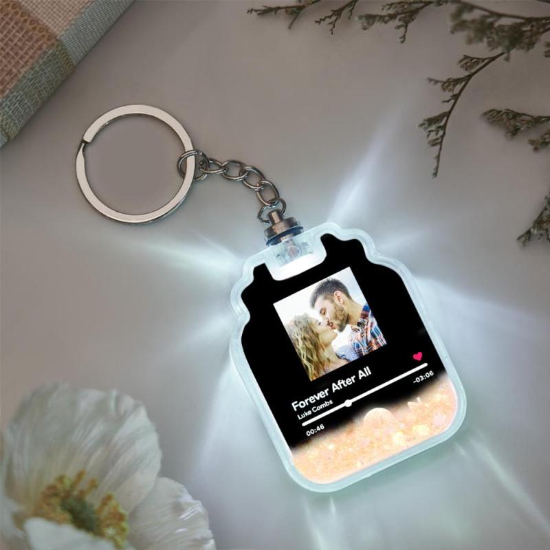 Aangepaste foto scanbare Spotify-code verlichte drijfzand flesvorm sleutelhanger