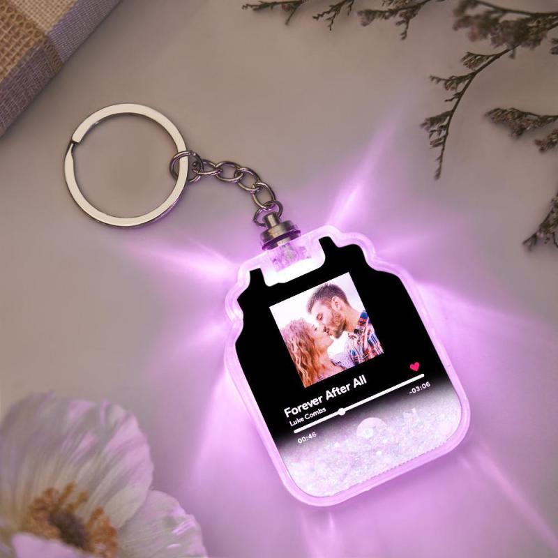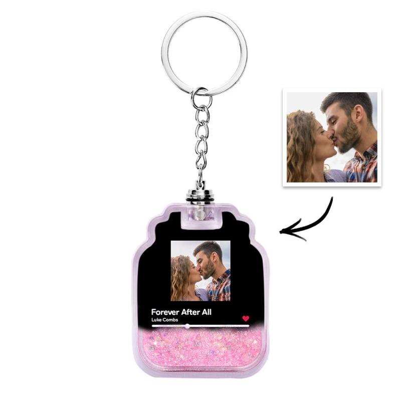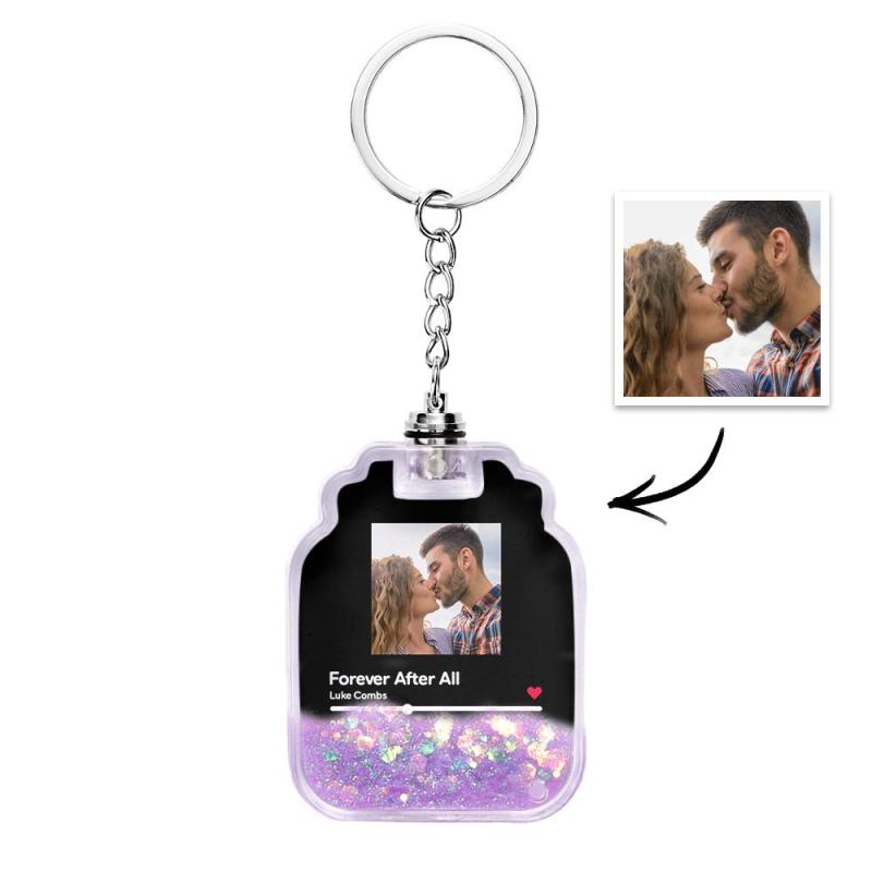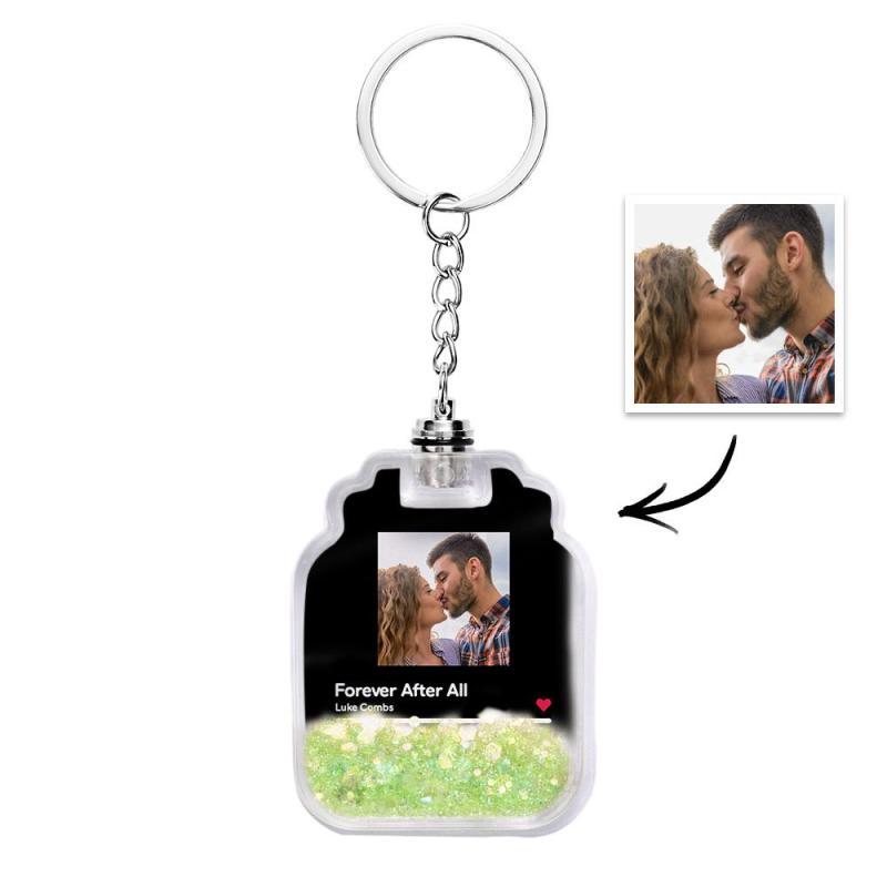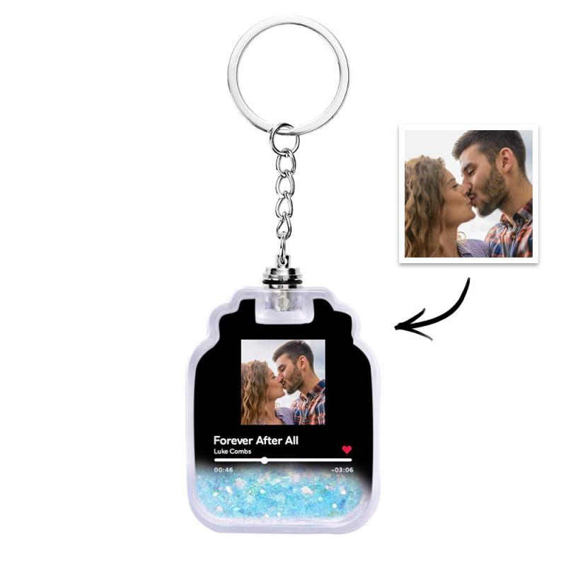 Homepage / Aangepaste foto scanbare Spotify-code verlichte drijfzand flesvorm sleutelhanger