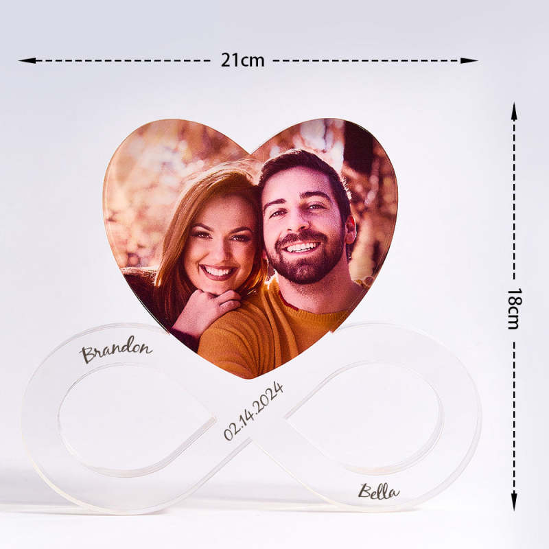 Aangepaste Foto Infinity Hart Acryl Decoratie Gepersonaliseerde Foto Cadeau Voor Paar Jubileum Cadeau