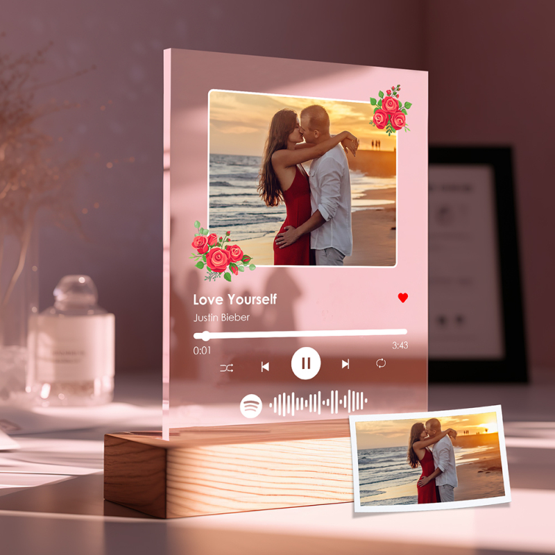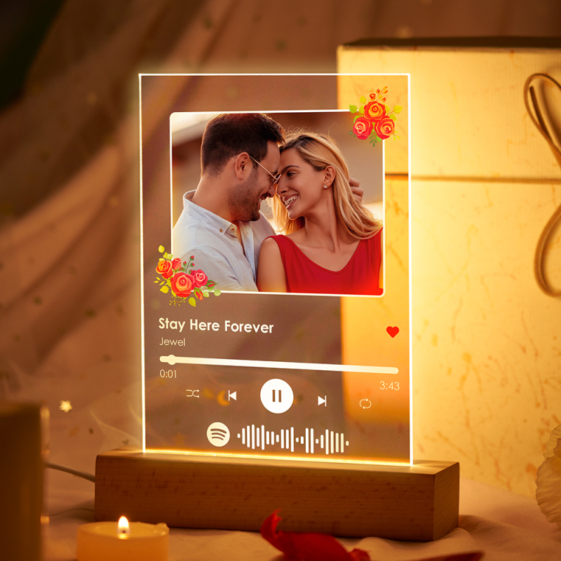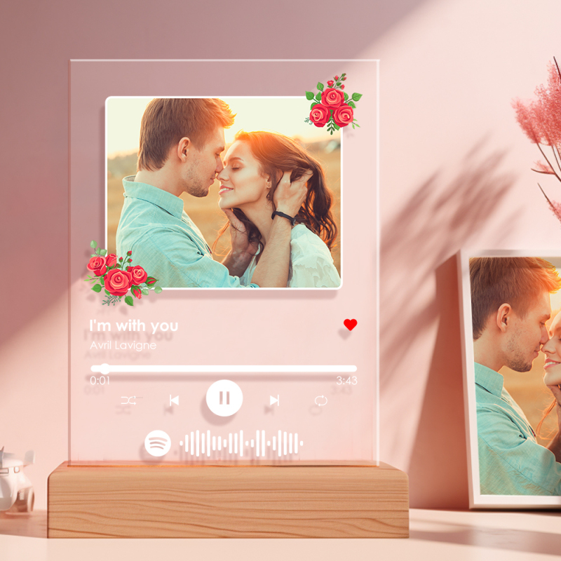 Aangepast Spotify-nachtlampje Aangepaste fotobloemdecoratie Speciale cadeaus voor haar