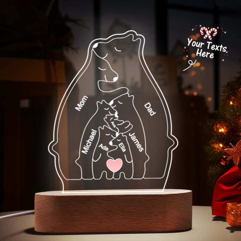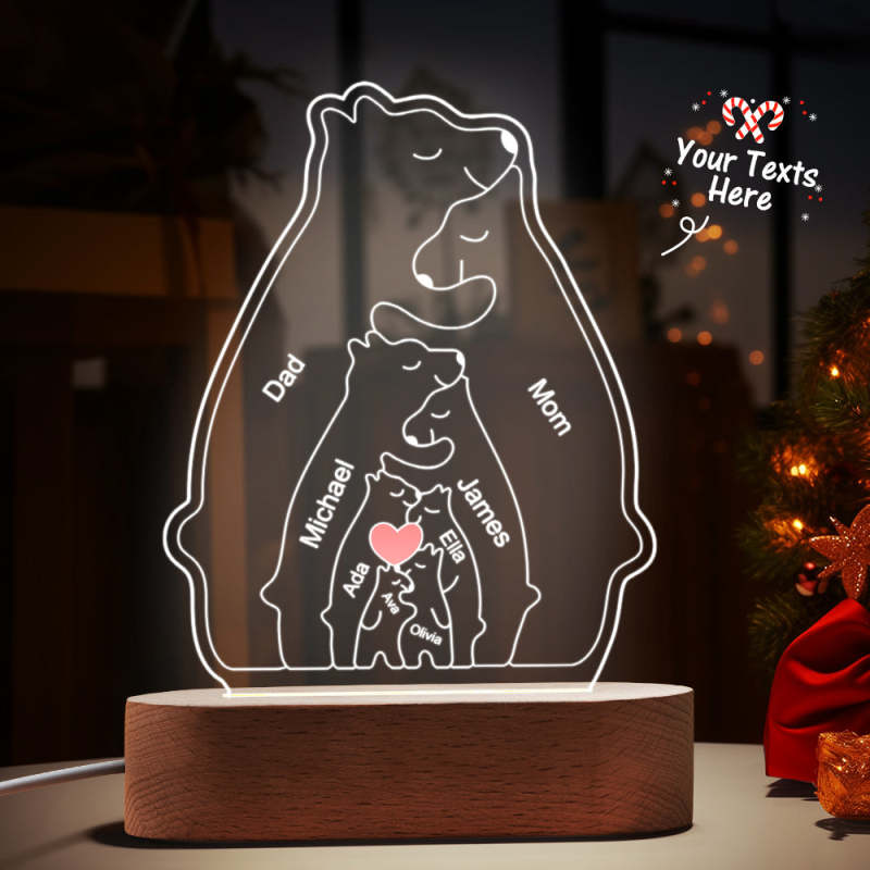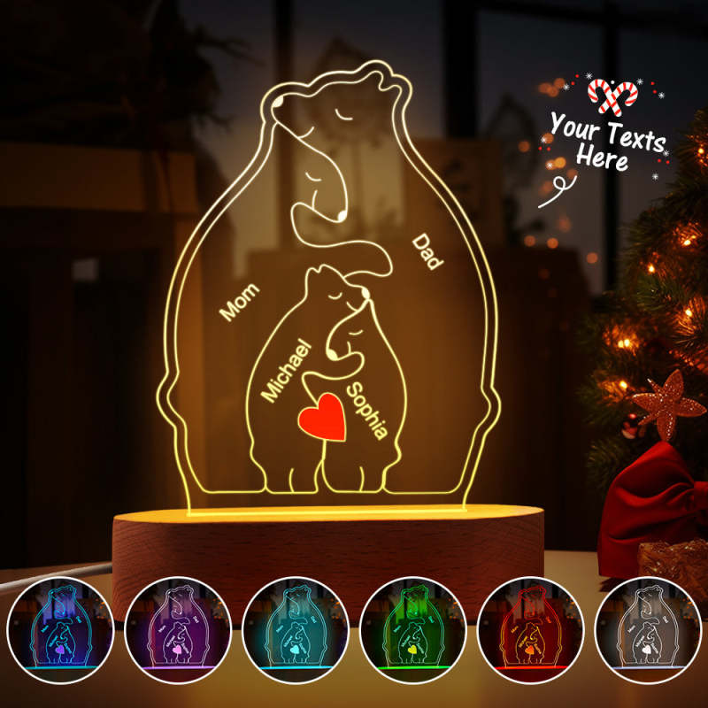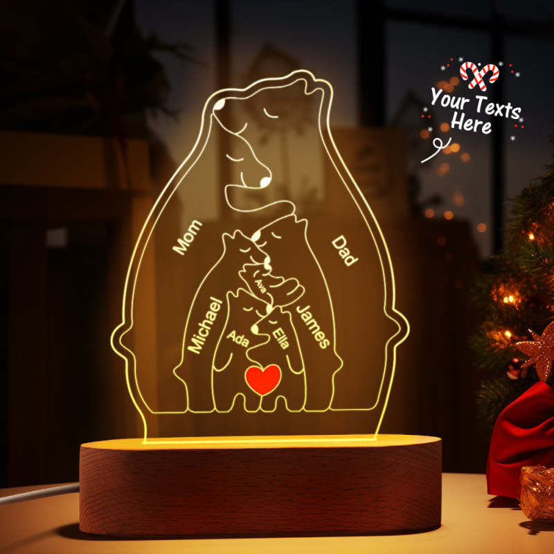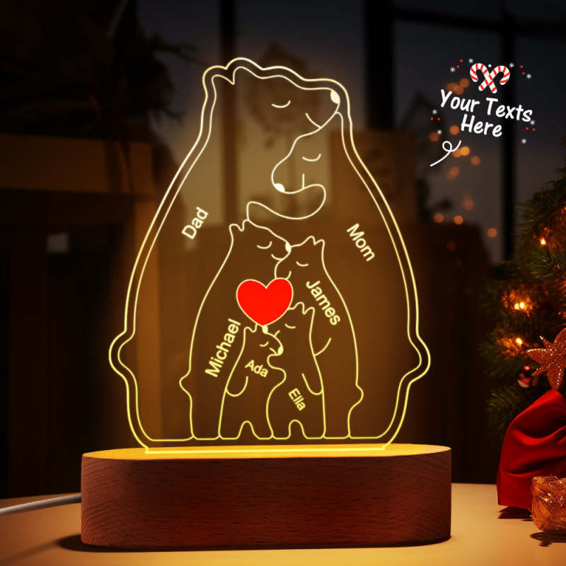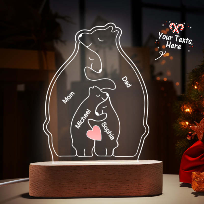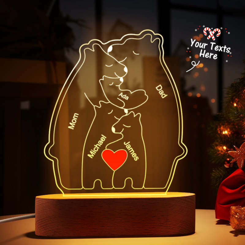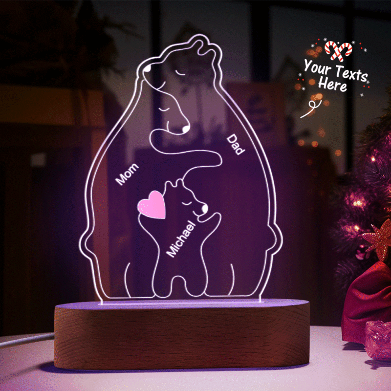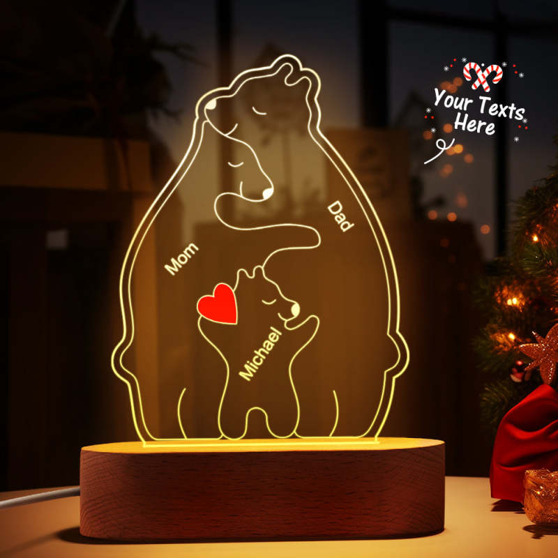 Gepersonaliseerde namen Warm Bear Family Acryllamp Aangepaste nachtlampje Beste kerstcadeau