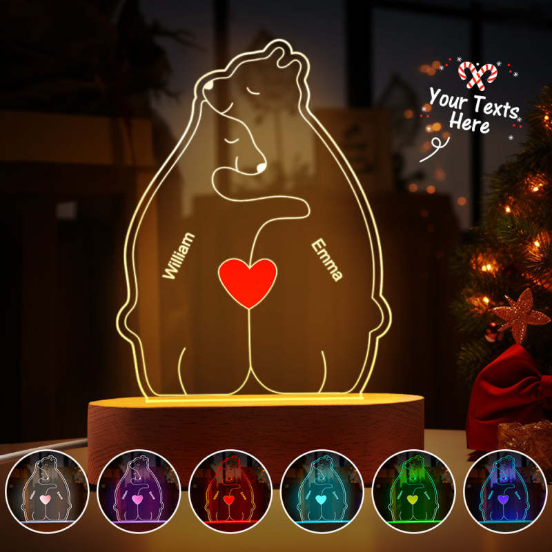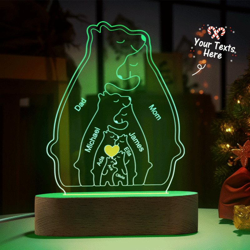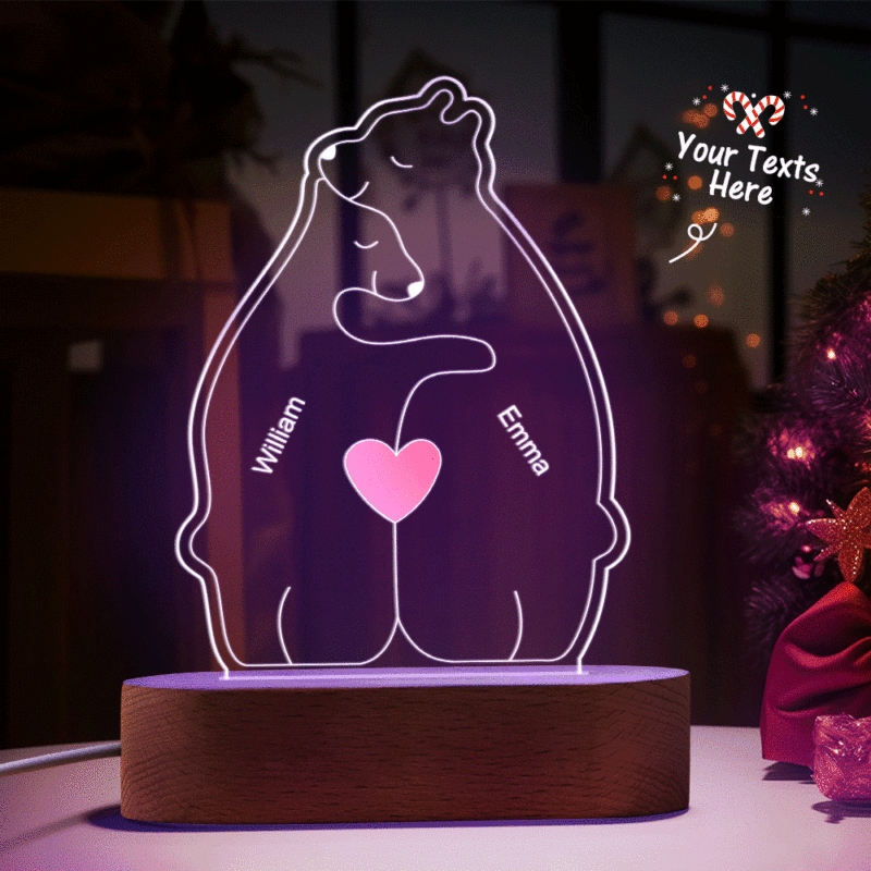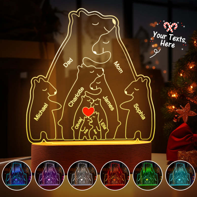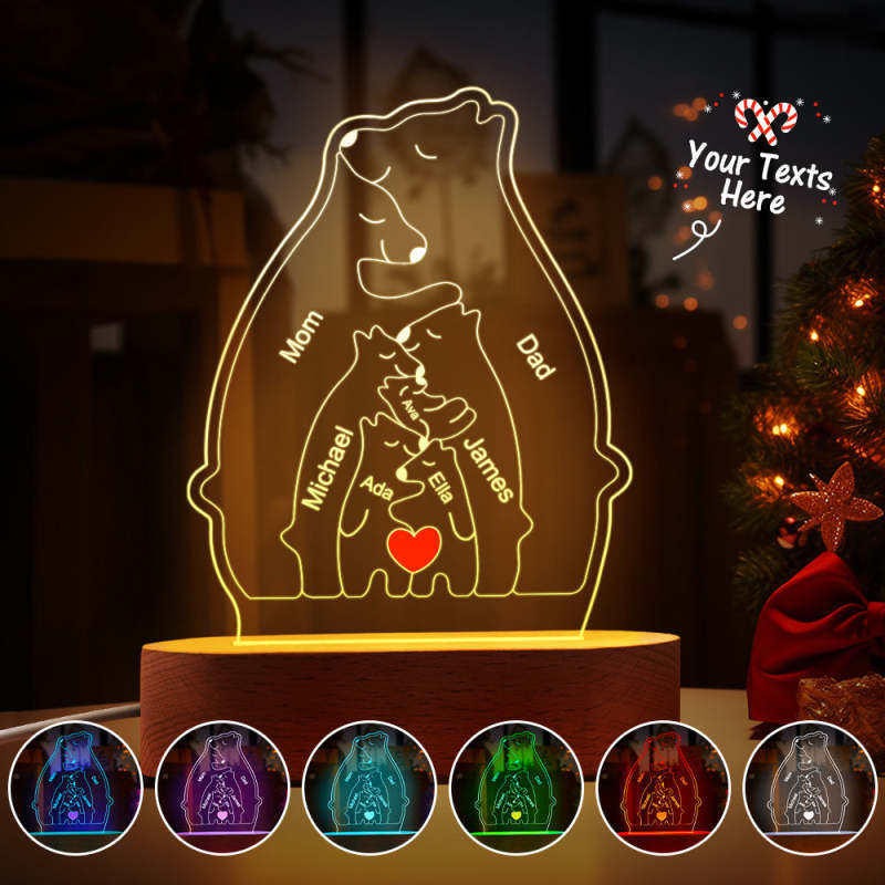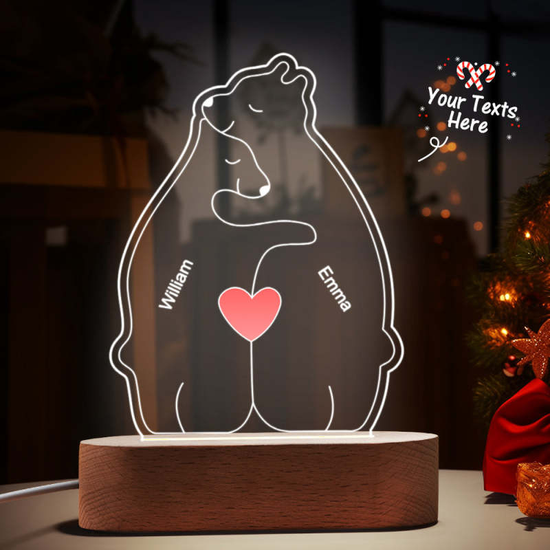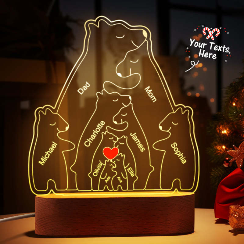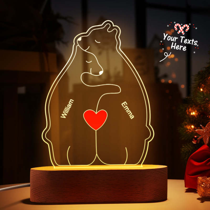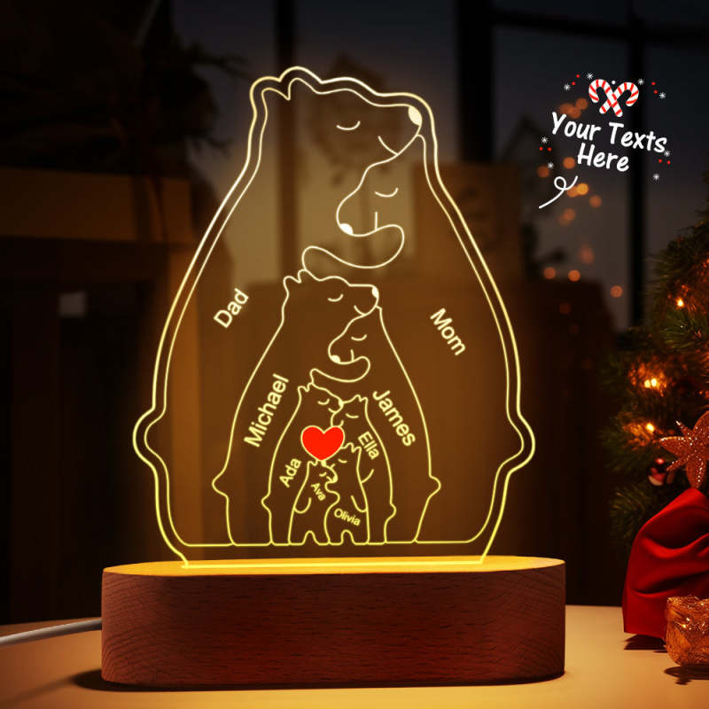 Gepersonaliseerde namen Warm Bear Family Acryllamp Aangepaste nachtlampje Beste kerstcadeau
