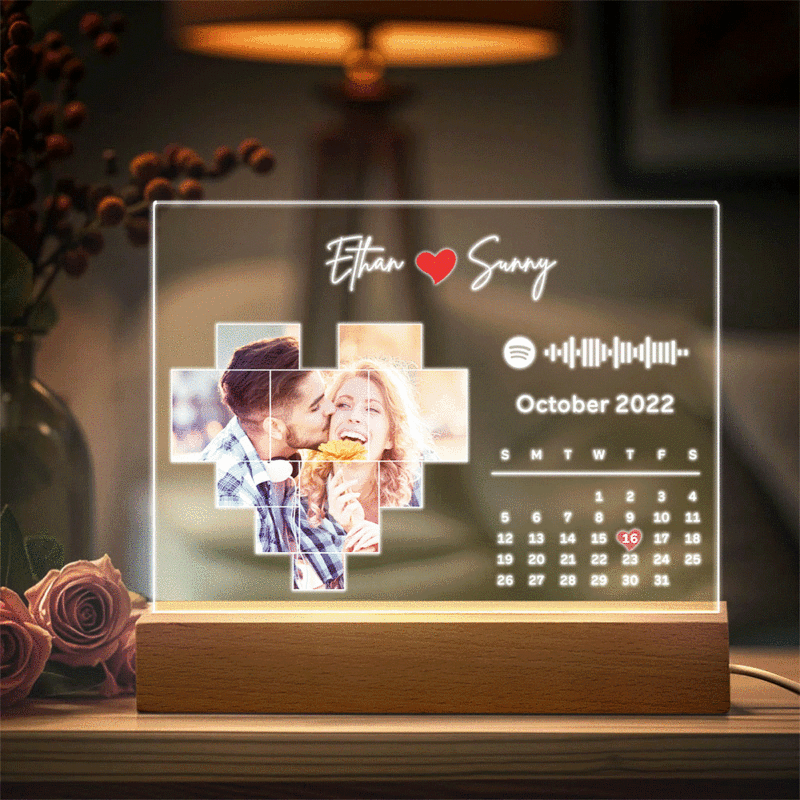 Gepersonaliseerde Spotify-kalender Acryl Nachtlampje Foto Decor Verjaardagscadeau Voor Koppels