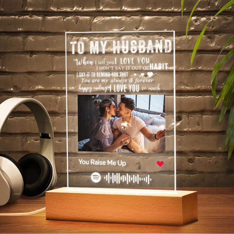 AAN MIJN ECHTGENOOT - Gepersonaliseerde Spotify Code Muziek Plaquette Nachtlampje (5,9 x 7,7 inch)