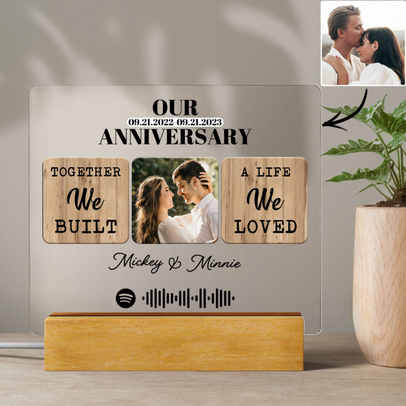 Samen hebben we een leven opgebouwd waar we van hielden. Aangepaste fotodatum - het beste gepersonaliseerde nachtlampje voor een bruiloft